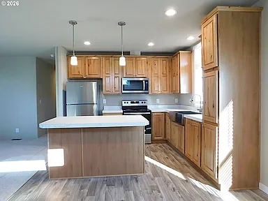 Unit 65 is a Brand New 2025 Manufactured Home located in Glenwood MHP, a 55 and older Manufacture Community located in Warrenton, OR. This 2 bedroom, 2 bathroom home offers an open floorplan layout, with an additional open room that could be used as an in-home office, kitchen island that is great to entertain, a separate side entry room that has room for a washer and dryer, as well as both porches have covered awnings.